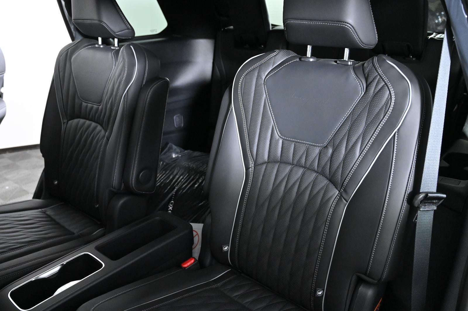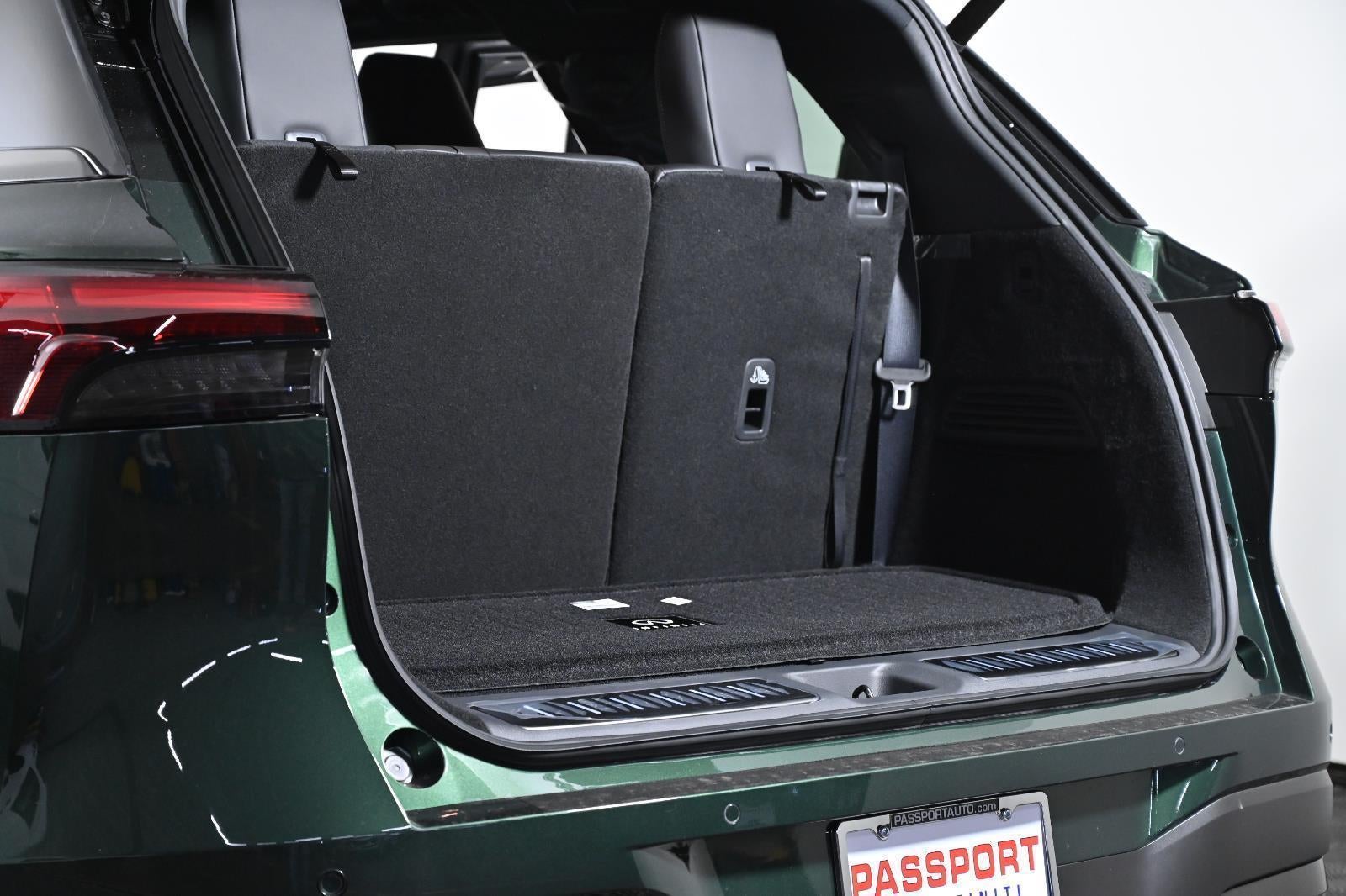 DEEP EMERALD/BLACK OBSIDIAN, STONE GRAY, SEMI ANILINE LEATHER-APPOINTED SEATING SURFACES, [C03] 50 STATE EMISSIONS, [B10] SPLASH GUARDS, [E08] 2-TONE PREMIUM PAINT, [M93] DARK CARGO PACKAGE, [N96] INFINITI RADIANT DARK ILLUM CARGO SCUFF PLATES, [K12] DARK ILLUMINATED KICK PLATES, [L12] CARPETED FLOOR MATS W/CAPTAINS CHAIRS ON 3RD ROW TRAY, [B94] BLACK ROOF RAIL CROSSBARS, [S55] LITERATURE KIT