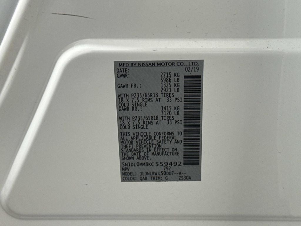 - Tires: 235/65R18 T-Rated All-Season