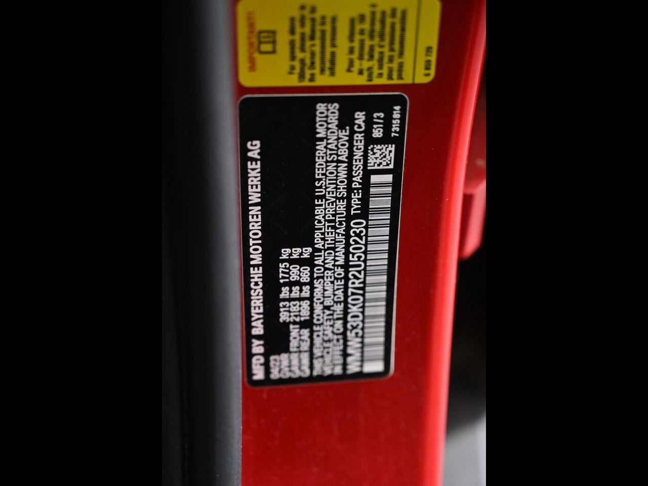 - Rear Tire Order Code: 927